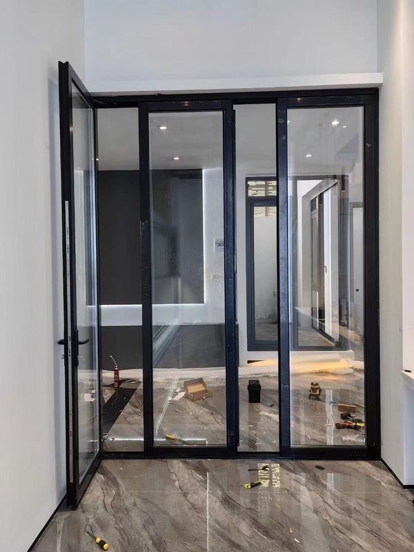 Składane aluminiowe szklane drzwi z podwójnym lub potrójnym przeszkleniem mają wiele szybków ze szklanym przestrzenią między nimi, która często jest wypełniona gazem argonowym.,poprawa ogólnej efektywności energetycznej.